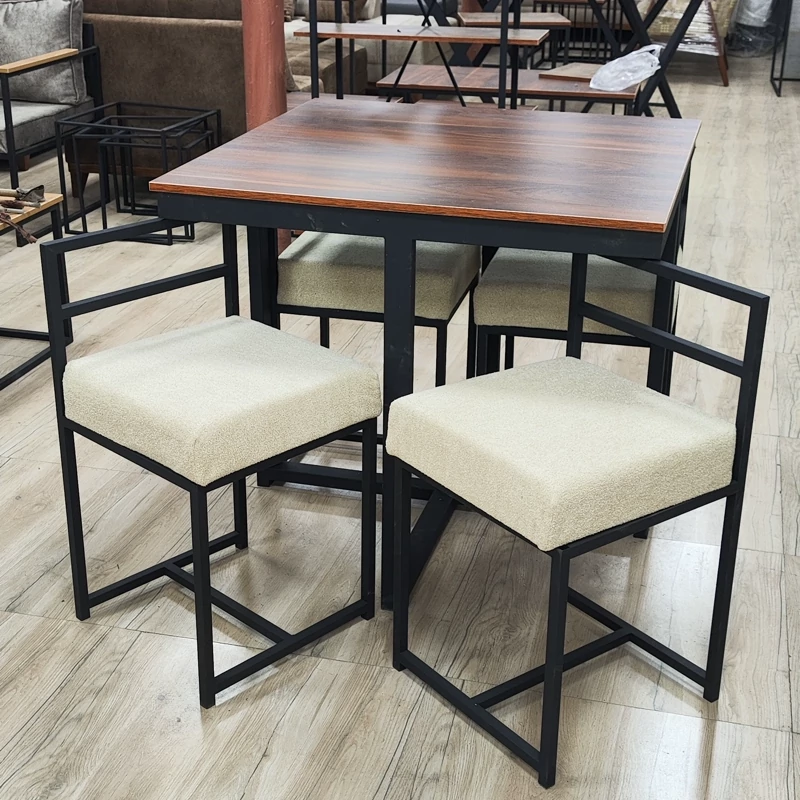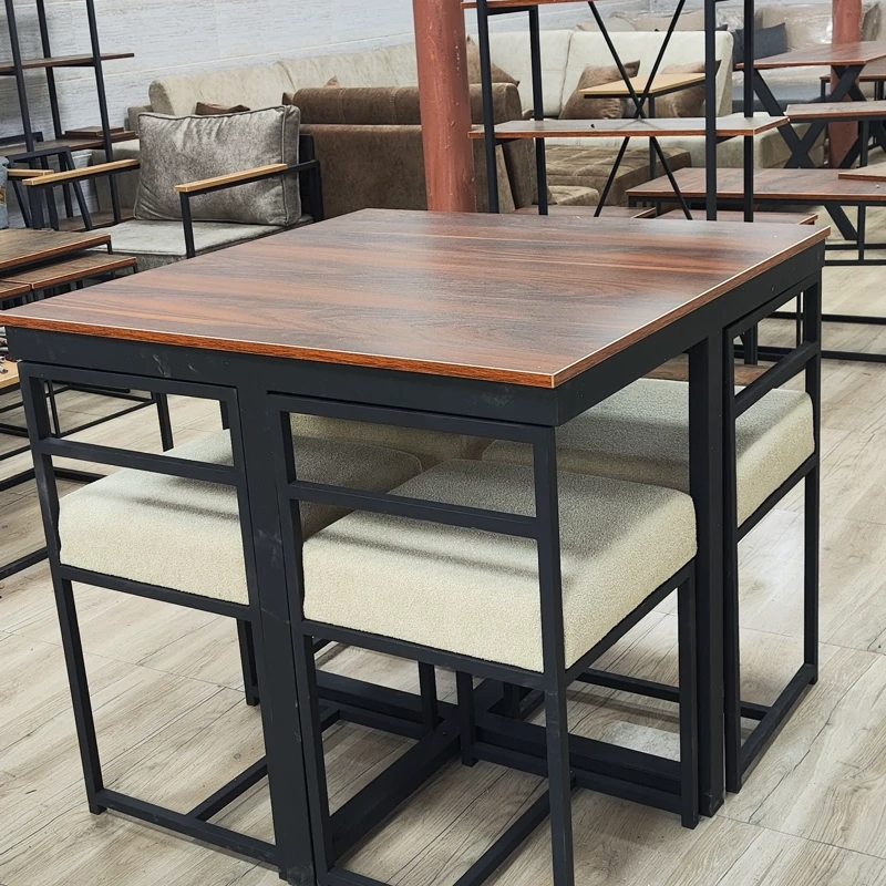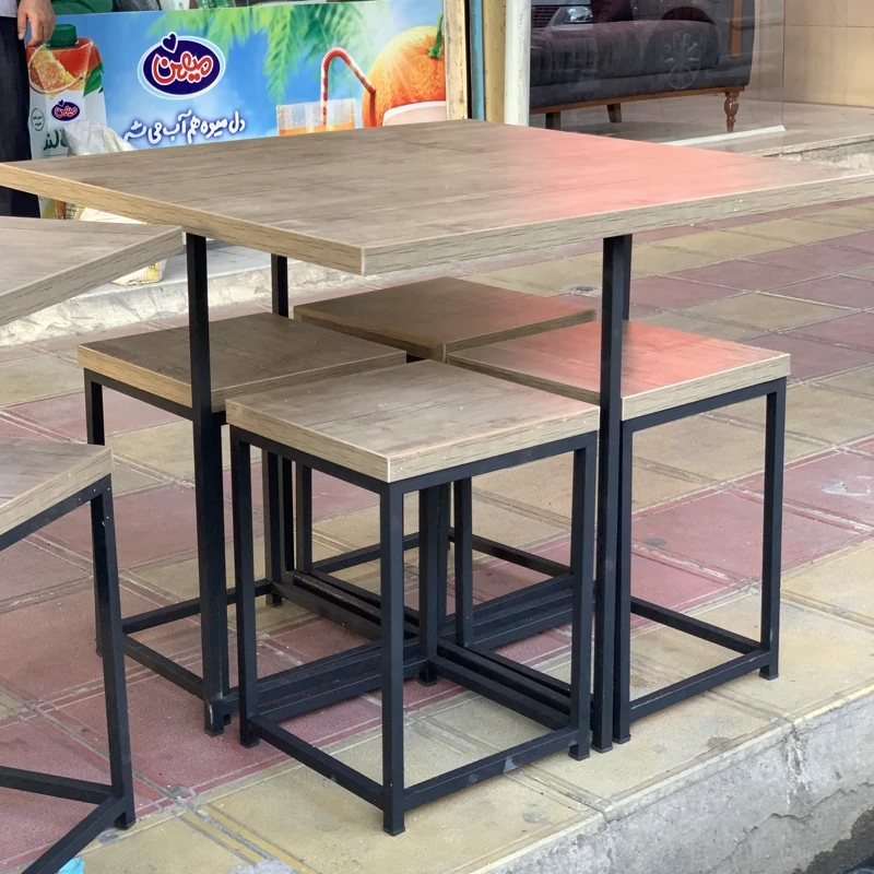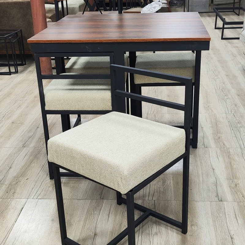 میز غذا خوری ۴ نفره کم جا ترکیب ام دی اف دوبل و فلز دو در دو رنگ کوره ای سوپر مات ضد خش ضد زنگ بسیار مقاوم و بسیار سبک